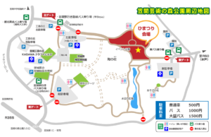 そこからは徒歩や無料の周遊バスで会場に向かうことができます。