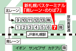 ⑤新札幌バスターミナル(地下鉄新さっぽろ駅・JR新札幌駅に直結)