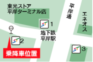 駅からの徒歩移動が無い分、地下鉄東豊線より早く到着・乗車できます。