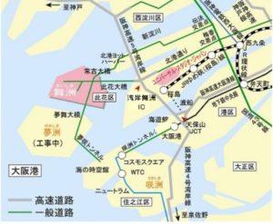 南港(咲洲)方面からは夢咲トンネルを通過し、夢舞大橋を渡る