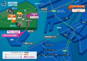 夢洲~SUMMERSONIC 会場までの無料シャトルバス(片道約5分)