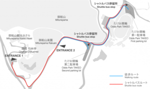 たけお競輪駐車場から第一入門口までシャトルバスの運行があります。